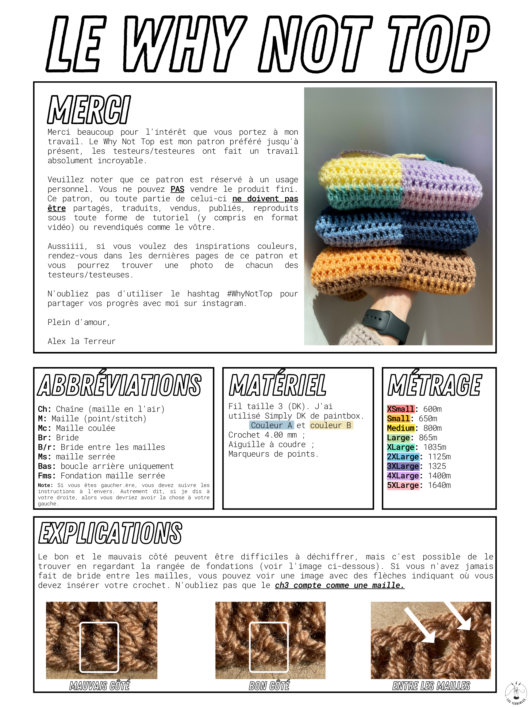 Le Why Not Top est un patron au crochet inclusif avec ses tailles XS à 5XL.