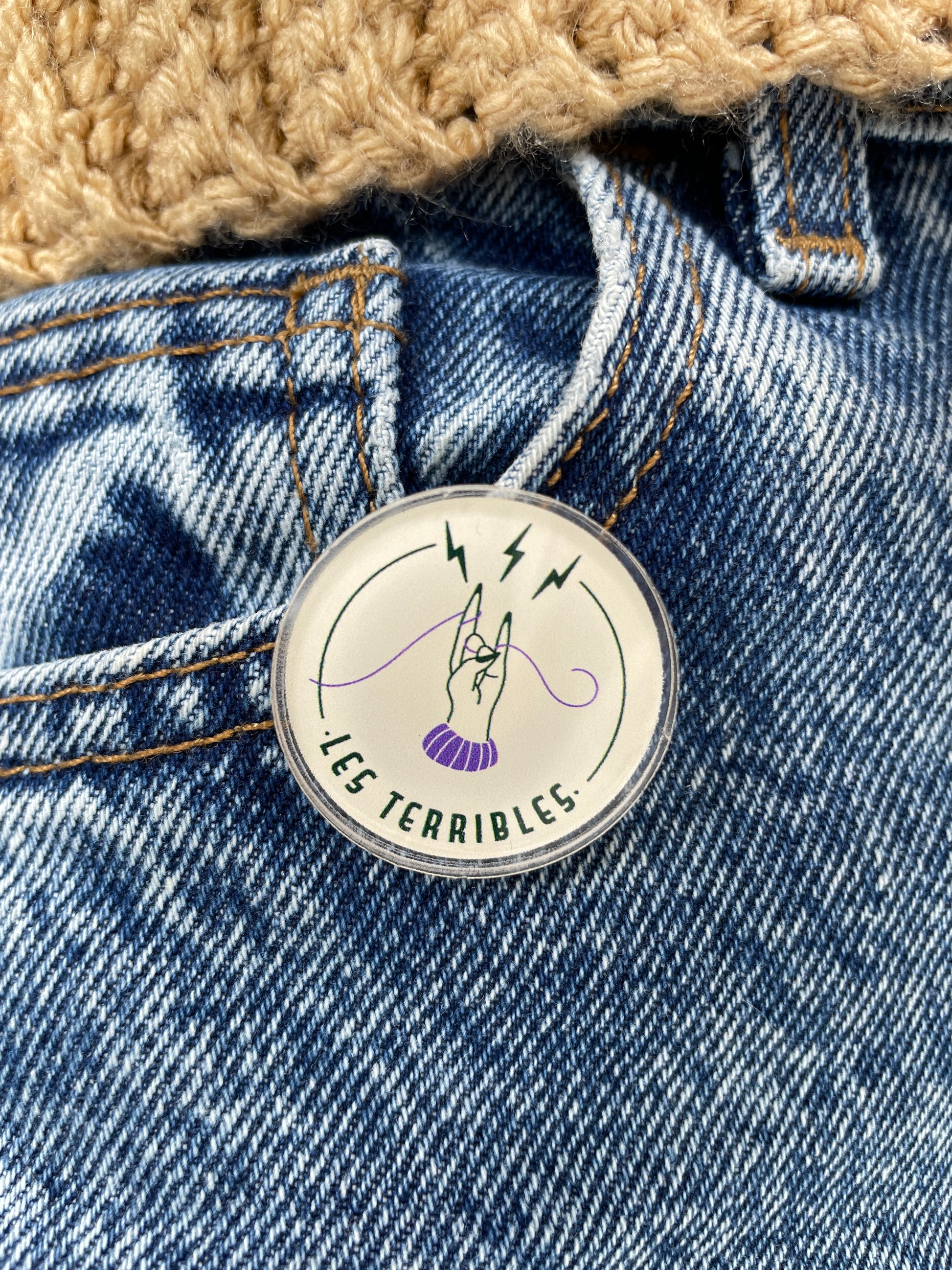 Button: Just your coolest backpack accessory? I used to be obsessed with buttons, I never imagined I'd get my own! They measure 32mm x 32mm. (1.25" x 1.25").